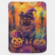 Spooky Keeshond Dog Halloween Witch And Pumpkin Baby Blanket