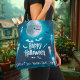 Get into the Halloween spirit with this eerie yet fun tote bag design featuring a full moon, flying bats, and spooky ghosts. The dark blue and silver tones give this bag a mysterious nighttime feel, perfect for trick-or-treating or Halloween parties. Personalize it with your name and add a touch of spooky flair to your accessories.