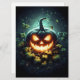 Spooky nature glowing Halloween pumpkin Holiday Card