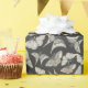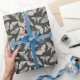 Spooky Halloween wrapping paper features a pattern of white moths on a dark smoky background.