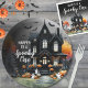 Spooky One 1st Birthday Party Paper Plate. Celebrate your little one’s first birthday with this fun and festive paper plate featuring the phrase “Name Is A Spooky One” at the top in playful script and simple fonts. The design showcases a classic black and white haunted house with cute ghosts and bats, plus pops of orange from pumpkins, jack-o’-lanterns, and a spooky tree. Perfect for serving treats while keeping the Halloween party theme fun and whimsical.