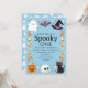 Celebrate your little boo with a spooktacular birthday bash! These adorable kids' birthday invites feature a cute ghost, black cat, pumpkin, witch's hat, skull, bat, and some candy against a light blue background—perfect for a party as sweet & playful as your little one! Order now & let the hauntingly good times begin!