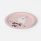 Spooky one Halloween cute ghost 1st birthday paper plate. Modern Halloween-themed design for a spooky party! This birthday paper plate features a happy ghost wearing a pink party hat with a dusty pink background.