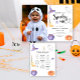 Halloween Boo 1st Birthday invitation. Watercolor ghost, witch's hat, cauldron, broom, pumpkin, candle.