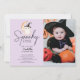 Celebrate your little one's special day with our enchanting Halloween-themed birthday invitation! Featuring a charming ghost wearing a witch hat and a whimsical moon backdrop. Perfect for a spooky yet sweet celebration, this invitation sets the tone for a memorable birthday party filled with fun and magic. Invite your guests to join in the festivities with this delightful design that is sure to bring smiles and excitement!