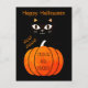 Spooky Orange Black Cat Trick or Treat Halloween Postcard