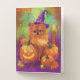 Embrace the Halloween spirit with this enchanting design featuring a cute dog in a witch hat surrounded by carved pumpkins. Perfect for adding a touch of spooky charm to your festive celebrations.