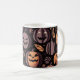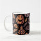 This Halloween-themed mug features a playful design of jack-o'-lanterns with various spooky expressions, surrounded by leaves and other autumnal elements. Perfect for adding a touch of festive fun to your morning routine.