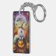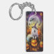 Spooky Samoyed Dog Halloween Witch And Pumpkin Keychain