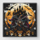 A haunting scarecrow stands amidst glowing pumpkins, with a dark castle in the background under a full moon, evoking eerie Halloween vibes.