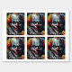 Halloween party favors with ai art depicting a scary clown surrounded by jack-o-lanterns.
