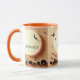 Spooky, scary, creepy Hallow's eve drinkware for guests. With orange shady setting, black Jacks and black bats, this mug is perfect for Halloween. Customizable text for your own words with Zazzle's tools for modern typography, you will love to personalize it.