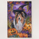 Spooky Shetland Sheepdog Halloween Witch Pumpkin Jigsaw Puzzle