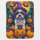 Spooky Shih Tzu Dog Halloween Witch And Pumpkin Baby Blanket