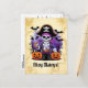Send a frightfully fun Halloween greeting with this bold and playful pirate-themed postcard! Featuring a grinning skeleton pirate in full regalia — complete with pumpkins, bats, and haunted trees — this design captures the spirit of the season with a cheeky nautical twist. Set against an aged treasure map background with accents of purple and black, it’s perfect for pirate-loving friends, Halloween party hosts, or anyone who enjoys a little humor with their haunt. This Halloween card is customizable — add your own message, name, or spooky wishes. Whether you're sending greetings across the seas or delivering it with a bottle of rum, this card is sure to make ‘em smile (or cackle like a cursed buccaneer). Edit from the product page or to change font style of color, use the design tool.