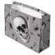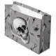 A gothic-inspired Halloween gift bag featuring a detailed vintage skull surrounded by spiders, beetles, and cobwebs on a gray background. Perfect for wrapping Halloween party favors, spooky birthday gifts, or gothic-inspired presents. This eerie yet stylish design makes gift-giving extra memorable during the spooky season.