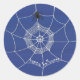 Add a spooky touch to your mail with these Happy Halloween sticker labels, featuring a cute typography design and a spooky scary spider web. Designed with a stylish calligraphy script in black, blue, and white, these labels bring a unique creative design to your Halloween stationery. The funny cartoon drawing adds a playful charm, perfect for fall autumn parties. With a fun whimsical style, they make the perfect envelope seal—shop now for a festive finishing touch!