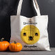 Get your ghouls and goblins ready for trick or treating with this personalized Halloween tote bag. Featuring an image of three black spiders on a spiderweb, script typography that reads, “Happy Halloween,” plus a customizable name, this tote is perfect for carrying sweet treats. Add your child’s name to create a one-of-a-kind bag that can be used year after year.