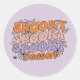 This vibrant and playful Halloween design celebrates the spooky season with the repeated phrase "Spooky, Spooky, Spooky Season" in bold, retro-inspired fonts. The words "Spooky" are stacked in eye-catching shades of orange, peach, and purple, creating a colorful and dynamic visual effect. The word "Season" is written in a flowing script at the bottom, tying the design together with a touch of elegance. Surrounding the text are charming Halloween elements like spider webs, bats, stars, and tiny spiders, adding a festive and spooky atmosphere. The entire design is lightly speckled, giving it a vintage, worn-in look that adds to its charm.