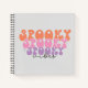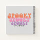 This design showcases the phrase "Spooky Spooky Spooky Vibes" arranged in a cascading, stacked format. The word "Spooky" is repeated three times, each in a different color—starting with a vibrant orange, transitioning to a soft pink, and ending with a pastel purple. The letters are thick and rounded, giving a playful and bubbly appearance that contrasts with the spooky theme. The word "vibes" is written below in a delicate, black cursive font, adding a stylish touch to the overall design. Small star accents surround the text, enhancing the whimsical and festive mood. This design is perfect for a fun and light-hearted take on Halloween.