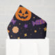 Unwrap the Halloween spirit with this festive tissue paper. A vibrant sugar skull takes center stage, surrounded by grinning jack-o'-lanterns and scattered Halloween candies. A constellation of golden stars pops against the dark background, making it the perfect finishing touch for any spooky gift.