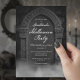 This eerie yet fun Halloween party design sets the tone with a vintage gray tombstone inscribed with a vintage font, surrounded by a haunting mist. Perfect for a night of dark humor, nostalgia, and celebration, this invite lets guests know they’re in for a party to die for. Embrace the drama and step into a frightful night in style. Created by Simply Farmhouse Press.