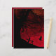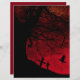 A creepy Gothic design of a tree silhouette with single crow flying toward cemetery. The background is a dark, atmospheric red sky.