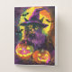 Embrace the Halloween spirit with this enchanting design featuring a cute cat in a witch hat surrounded by carved pumpkins. Perfect for adding a touch of spooky charm to your festive celebrations.