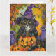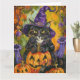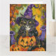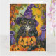 Spooky Tuxedo Cat Halloween Witch And Pumpkin Card