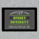 Embrace the spirit of Halloween with this personalized welcome mat that features trendy collegiate style text that says, “Spooky University” and “Hocus Pocus 101,” plus two creepy black widow spiders. This design will add a personal touch to your Halloween decor. Modify the three text areas to create a one-of-a-kind doormat to greet friends, family, and trick-or-treaters in style. Whether you’re hosting a haunted house party or just want to add a festive touch to your entryway, this customizable doormat is the perfect choice for showcasing your Halloween spirit.
