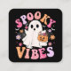 Spooky Vibes Ghost Retro Groovy Halloween Square Business Card