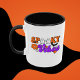 Start your day with a touch of Halloween magic with this cute and colorful “Spooky Vibes” coffee mug! This charming mug features a retro 1970s-inspired design with the phrase “Spooky Vibes,” where the 'O’s are cleverly replaced by ghost illustrations. The design is adorned with vibrant flowers, a heart, and playful bats, all in the classic Halloween colors of orange, black, white, and purple.