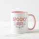 This fun and festive Halloween design features the phrase "Spooky Vibes" in a playful, dripping font that gives the text a gooey, eerie effect. The words are filled with soft, pastel shades of pink, orange, purple, and peach, adding a lighthearted and whimsical twist to the spooky theme. Beneath the text, a simple spider web illustration in a soft brown color adds a classic Halloween touch, tying the design together. The combination of the pastel colors and the spooky elements creates a unique contrast that’s both cute and a little bit creepy, making it perfect for Halloween