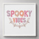 This fun and festive Halloween design features the phrase "Spooky Vibes" in a playful, dripping font that gives the text a gooey, eerie effect. The words are filled with soft, pastel shades of pink, orange, purple, and peach, adding a lighthearted and whimsical twist to the spooky theme. Beneath the text, a simple spider web illustration in a soft brown color adds a classic Halloween touch, tying the design together. The combination of the pastel colors and the spooky elements creates a unique contrast that’s both cute and a little bit creepy, making it perfect for Halloween