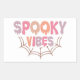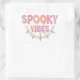 This fun and festive Halloween design features the phrase "Spooky Vibes" in a playful, dripping font that gives the text a gooey, eerie effect. The words are filled with soft, pastel shades of pink, orange, purple, and peach, adding a lighthearted and whimsical twist to the spooky theme. Beneath the text, a simple spider web illustration in a soft brown color adds a classic Halloween touch, tying the design together. The combination of the pastel colors and the spooky elements creates a unique contrast that’s both cute and a little bit creepy, making it perfect for Halloween