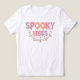This fun and festive Halloween design features the phrase "Spooky Vibes" in a playful, dripping font that gives the text a gooey, eerie effect. The words are filled with soft, pastel shades of pink, orange, purple, and peach, adding a lighthearted and whimsical twist to the spooky theme. Beneath the text, a simple spider web illustration in a soft brown color adds a classic Halloween touch, tying the design together. The combination of the pastel colors and the spooky elements creates a unique contrast that’s both cute and a little bit creepy, making it perfect for Halloween