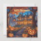 This Card features a spooky mansion in the forest with illuminated windows surrounded by lots of pumpkins. Send spooky Halloween Greetings to your loved ones! Custom text.