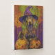 Embrace the Halloween spirit with this enchanting design featuring a cute dog in a witch hat surrounded by carved pumpkins. Perfect for adding a touch of spooky charm to your festive celebrations.