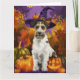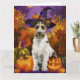 Spooky Wirefox Terrier Dog Halloween Witch Pumpkin Card