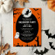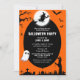 Spooky Witch Over The Moon Orange Halloween Party Invitation