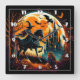 Spooky witch riding a horse under a full moon square wall clock