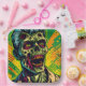 Halloween party paper plates. Scary decaying zombie done in a pop art comic book style ai art. Cool for Halloween or anyone who loves zombies..