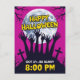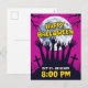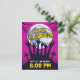 This highly visual and modern vertical Halloween postcard features a striking silhouette of zombie hands and graveyard crosses reaching up against a massive full moon. The vibrant magenta background contrasts sharply with the black and bold yellow text, making it perfect for a scary party invitation or event announcement for October 31st. The design is eye-catching and optimized for high click-through rates.