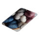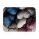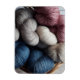 Featuring 3 different colored spools of yarn in a light brown woven basket, this is perfect for anyone with a yarn hobby.