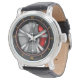 A bold design for automotive enthusiasts—this watch face mimics the sleek look of a high-performance alloy wheel with a red caliper, creating a dynamic and edgy accessory. Perfect for car lovers, racers, or anyone who enjoys the thrill of speed and modern design. Paired with a classic black leather band for a stylish finish.