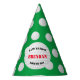 This joyful party hat would be a good addition to any golf fanatics party. The background features golf ball graphics covering the whole hat and a golf ball graphic where the details can be added. The background colours and text can be changed to suit your own requirements.