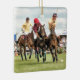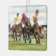 An art design of polo ponies and players during a chukka/chukker of a polo match.