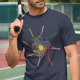 Colorful tee-stamp of tennis racquets overlapped with a yellow tennis-ball
