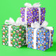 This playful Christmas wrapping paper showcases golf balls, tennis balls, footballs, soccer balls, baseballs, and basketballs all wearing festive Santa hats. Surrounded by twirling snowflakes on bright holiday backgrounds, this sports-themed gift wrap is perfect for athletes, coaches, and fans. A fun way to wrap Christmas gifts with a sporty holiday spirit.