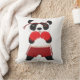 Throw pillow with a cute black and white panda bear with red shorts and boxing gloves!